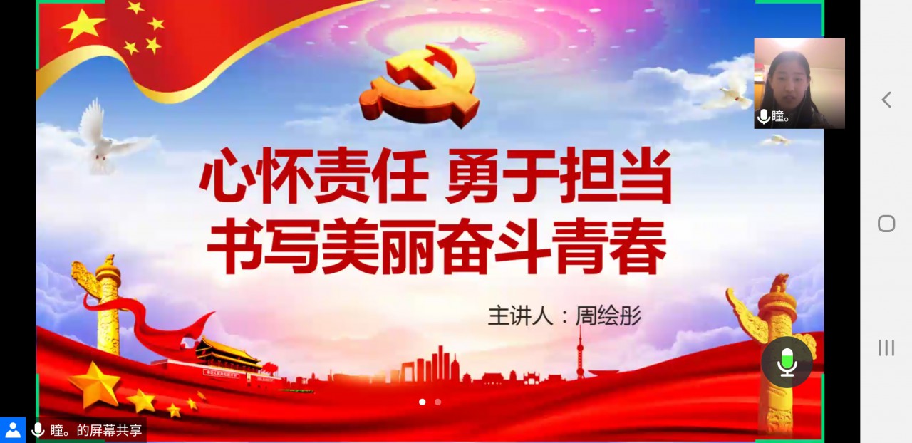 近日,由威斯尼斯人5845cc校研究生会学术部与初心使命研究生理论学习小组主办、威斯尼斯人5845cc研究生会承办的思政类研究生讲坛第9讲通过腾讯会议APP平台成功举办。威斯尼斯人5845cc2017级硕士研究生周绘彤担任主讲人,讲坛题目为《心怀责任,勇于担当,书写美丽奋斗青春》。