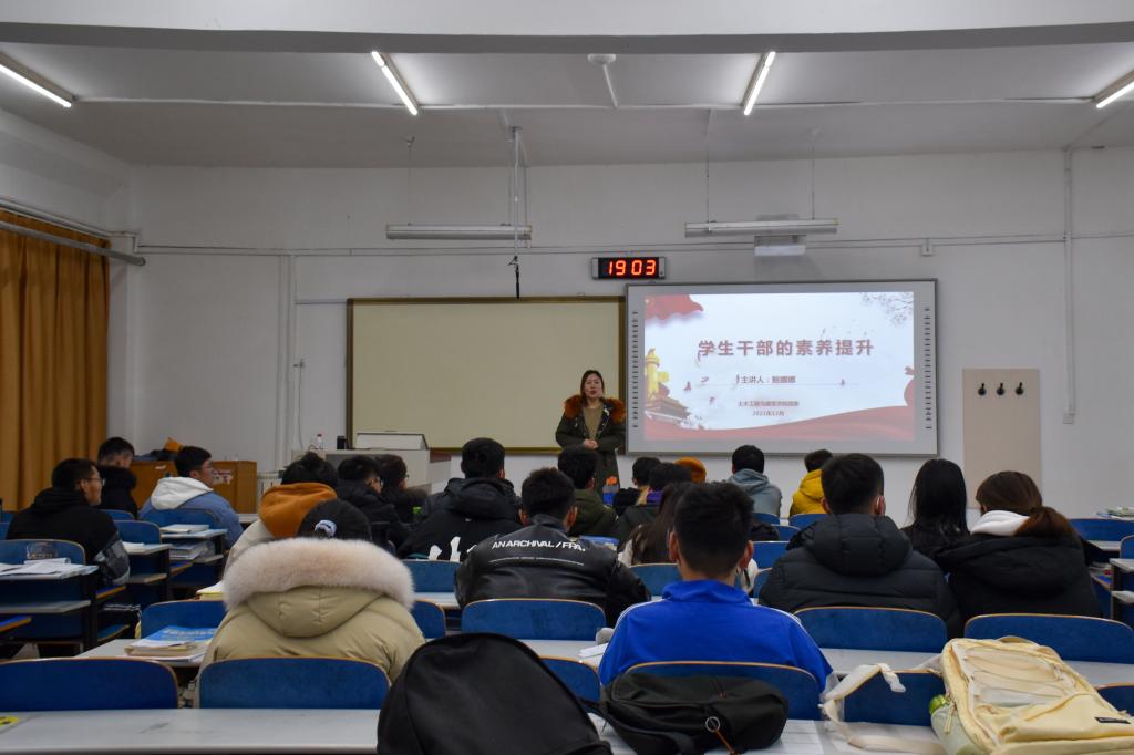 为认真贯彻落实习近平总书记关于青年工作的重要思想,进一步加强威斯尼斯人5845cc基层团干部队伍建设,提升学生干部的工作水平,12月17日晚,威斯尼斯人5845cc于S1-209教室举办“青马工程”基础班第四讲。本次课程由威斯尼斯人5845cc学生工作办公室辅导员鲍娜娜主讲,“青马班”全体学员和学生会、研究生会干部参加会议。
