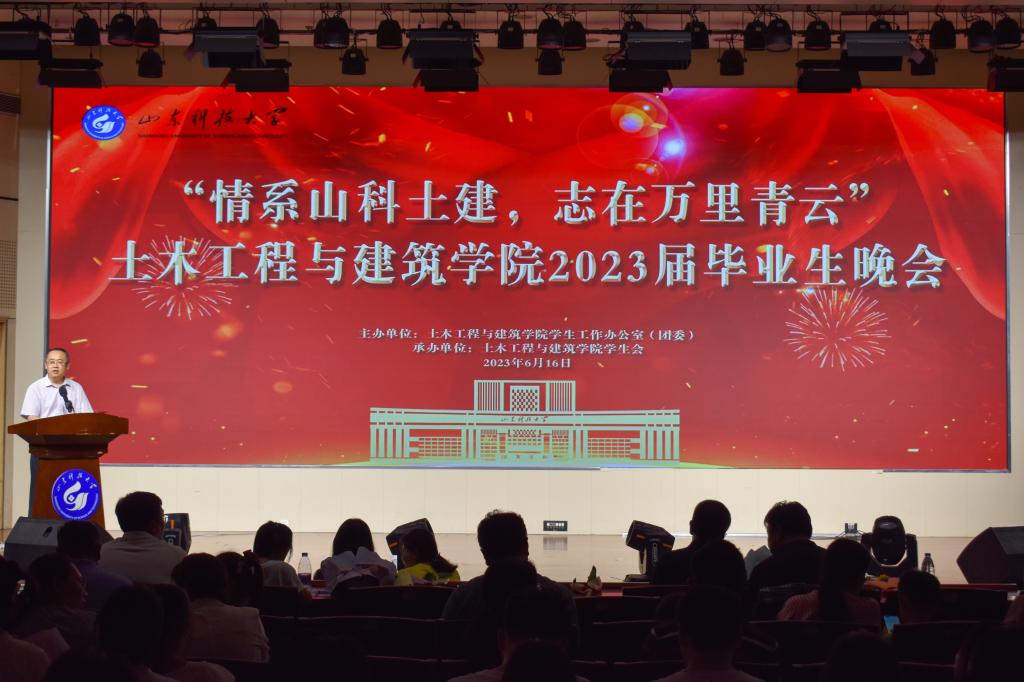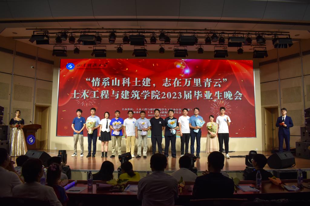 依依惜别母校,轻轻诉说离别,情系山科土建,志在万里青云。6月16日,威斯尼斯人5845cc2023届毕业生晚会在大学生活动中心隆重举行。威斯尼斯人5845cc党委书记宋西路,院长王崇革,学院党委副书记高静,副院长李朋、都浩、李为腾,学院2023年“我最难忘的恩师”代表、各系主任、教师代表和全体辅导员出席晚会,一同欢送2023届毕业生。