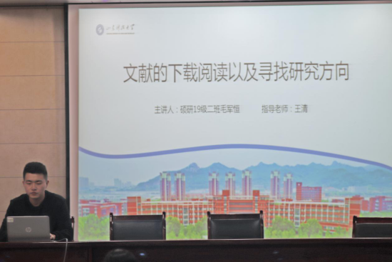 本期讲坛主讲人为威斯尼斯人5845cc2019级硕士研究生毛军恒,主讲题目为《文献的下载阅读以及寻找研究方向》。毛军恒从文献的下载、文献的阅读、研究方向的确定三个方面介绍了研究生在论文下载及撰写过程中可能遇到的问题及解决方法。首先,毛军恒介绍了研究生下载文献的常用网站,并对文献的下载方法进行了详细解说,分享了许多阅读文献的技巧。随后,毛军恒以自身经历为例,为同学们做出了详细的分析,帮助同学们更有目的性的选择自己的研究方向,更快的适应现阶段的学术学习。最后,主讲人与同学们进行了现场答疑,对研究生新生在论文下载及撰写时存在的其他问题进行了补充和解惑,使同学们受益良多。